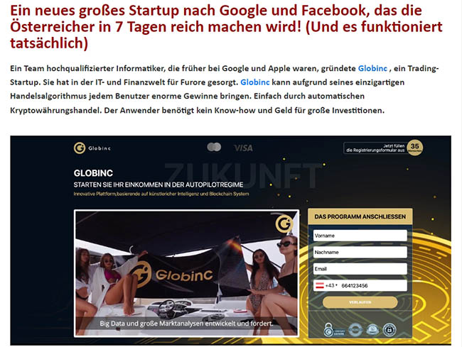 Zu Beginn eröffneten wir ein kostenfreies Kundenkonto mit einem vertrauenswürdigen deutschen Makler Globinc angelegt. Beachten Sie dabei bitte, bei der Anmeldung eine Handynummer anzugeben, weil der Kundenbetreuung gerne mit Ihnen persönlich in Verbindung tritt, damit zu gewährleisten, daß Sie tatsächlich sehr viel Kapital verdienen werden.